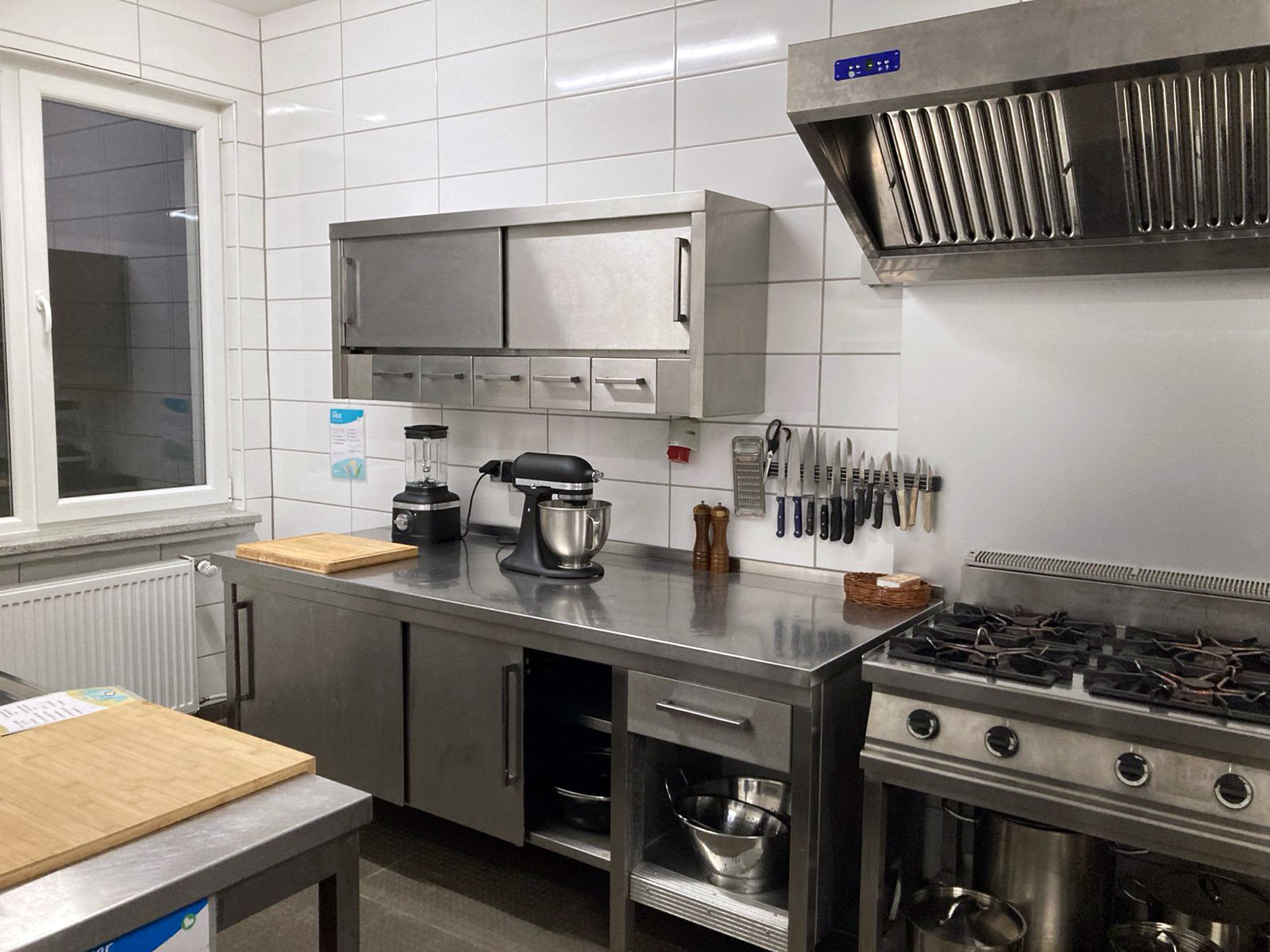 Im Mittelpunkt des Hauses steht eine voll ausgestattete Profiküche mit großem Gasherd, einem sehr leistungsstarken Backofen und einem separaten Spülraum mit zwei Geschirrspülern. Für begeisterte Köchinnen und Köche bietet diese Küche alles was das Herz begehrt und ist deshalb auch sehr gut für kulinarische Clubs geeignet.